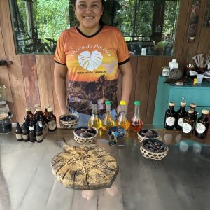 As part of one of the local communities we work with, we’ve found an incredible vendor Cheiro da Floresta, a women-owned small business who’s a true pioneer in researching the essential oils and fragrances of the Amazon. Meet Sui, she is dedicated to uncovering the unique scents and healing properties of the rainforest’s plants and woods, offering rare, hand-crafted oils that honor the land’s traditions and sustainability. You’ll have the opportunity to learn how to prepare essential oils using the locally sourced oils from the Amazon.